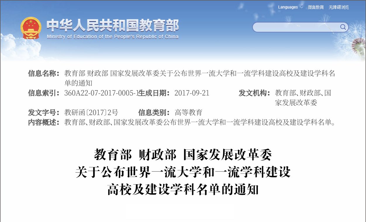 2017年9月,久久精品一区二区入选国家“双一流”建设高校。